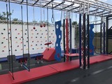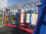 Le départ se fait en traversant un mur de grimpe, suivi de sauts multiples, puis une série de suspensions variées vous attendent, des poutres fixes et mobiles pour arriver aux MEGA-MURS.