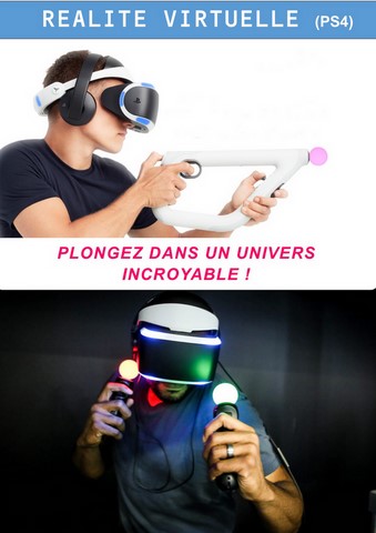Pack VR = PS4, casque PSVR, PSMOVE, manette, télé, fauteuil, table